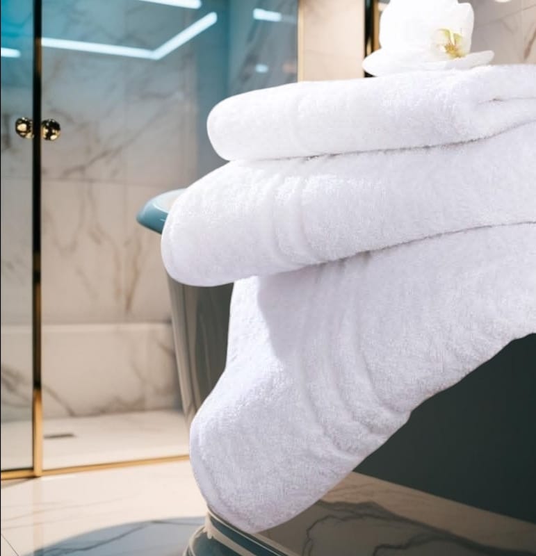 • un asciugamano ospite, dalle dimensioni più piccole (40 x 60 cm), perfetto per gli ospiti o per l’uso quotidiano.